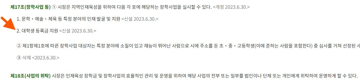 참고로 자치법규 정보 시스템에서 위 장학제도에 대한 통영시의 조례를 확인하였습니다.