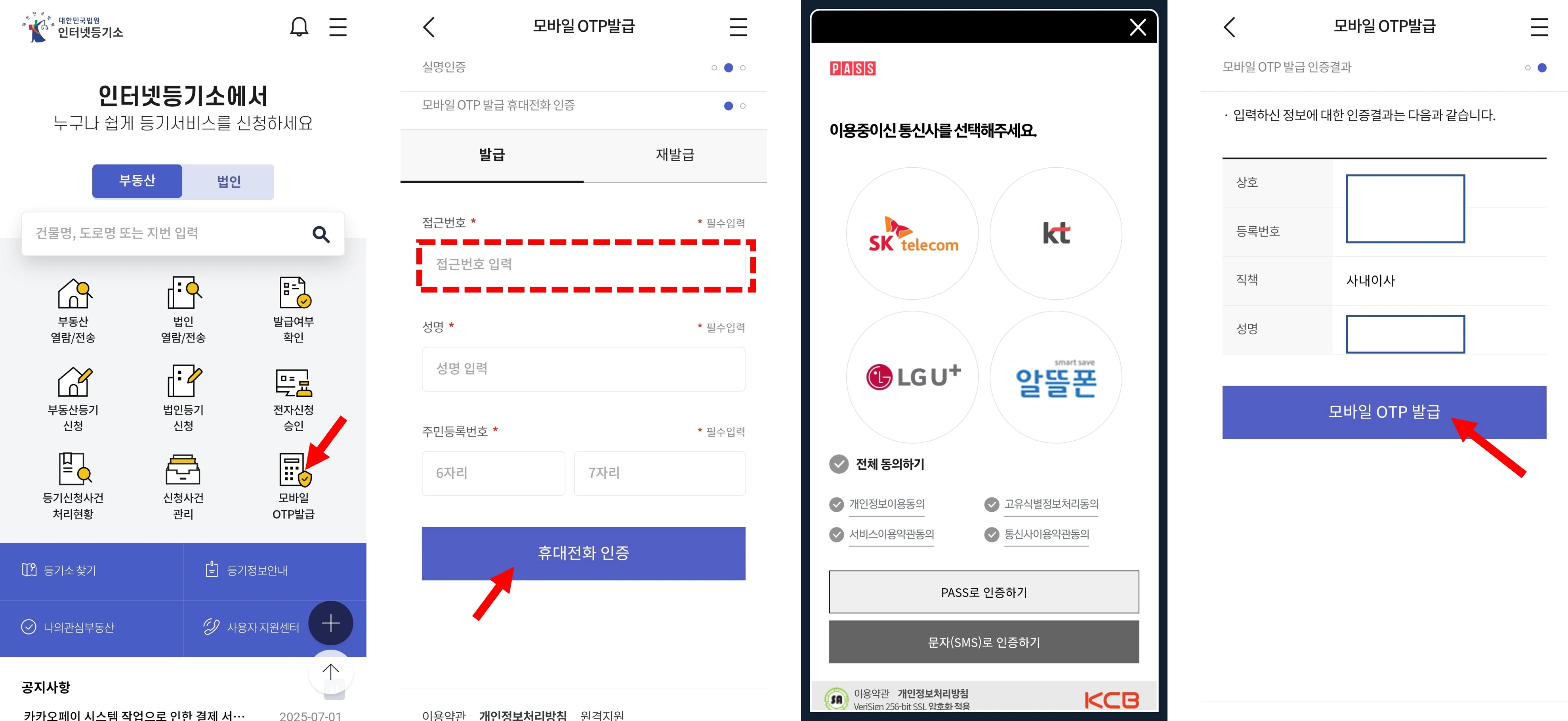인터넷등기소 OTP 발급 순서는 아래와 같습니다.