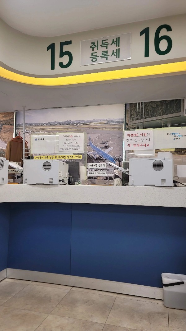 이전등록 창구에 서류를 제출하면 아래 사진처럼 순서대로 처리하고 오라고 안내해 주십니다. 취등록세 창구에 서류 제출하면 세금납부서를 받습니다. 이때 취등록세 감면 (다자녀 혜택 등)을 받으실 분은 여기 취등록세 창구에 요청을 해야 합니다.
