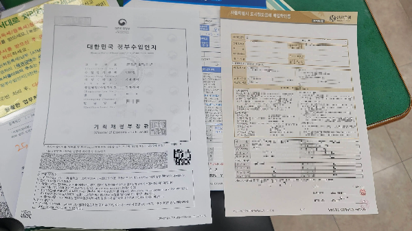 우선, 번호표부터 뽑고, 서류 작성 또는 정리를 합니다.