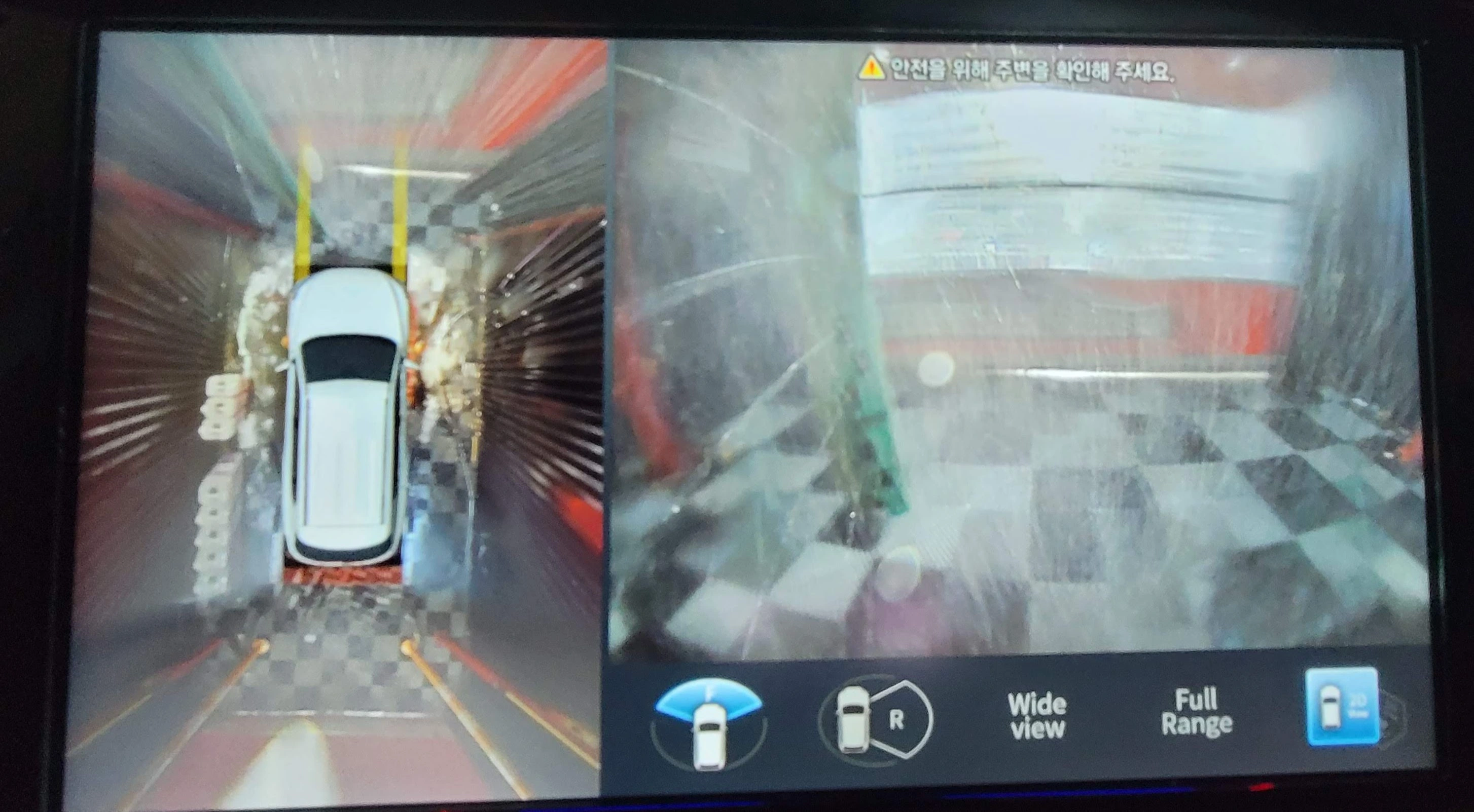 하부세차 시 천천히 진입하라는 안내가 있고 바닥에서 스팀이 솟아오릅니다. 천천히 들어가면 됩니다.