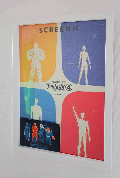 이번 영화도 CGV 특전이 있었는데요, 이 영화의 연출 특색과 잘 어울리는 포스터입니다. SCREEN-X 관람 전용 포스터이며, 액자에 걸어놓으니 빈티지 감성도 보여서 좋습니다. 그 아래 작은 엽서는 용산 아이파크몰에서 판타스틱 4 행사가 있어 받아왔습니다.
